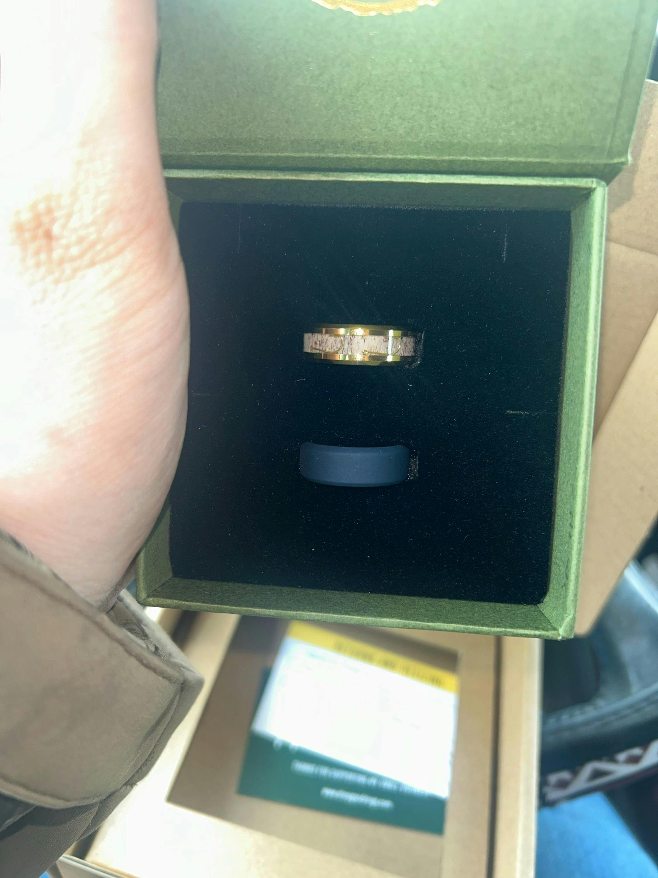 Extremely well crafted, and was just what I was looking for. Highly recommend. High quality ring, and absolutely beautiful. Amazing customer service, helped change my shipping address. I love that it came with a silicone ring as well! Thank you so much!