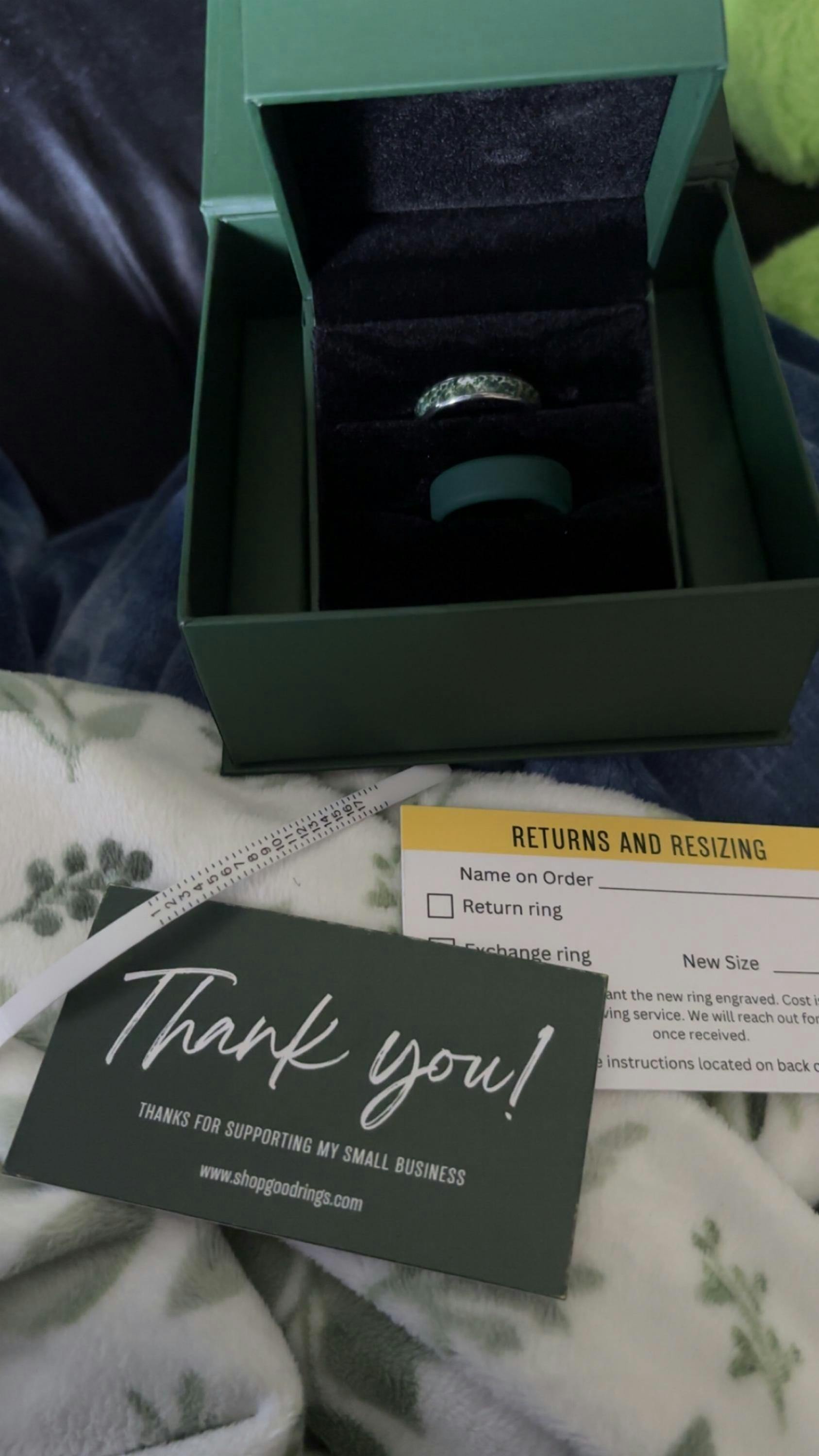 Each package includes a form with detailed instructions on how to return or exchange the ring, as well as a ring sizer to facilitate easy exchanges.